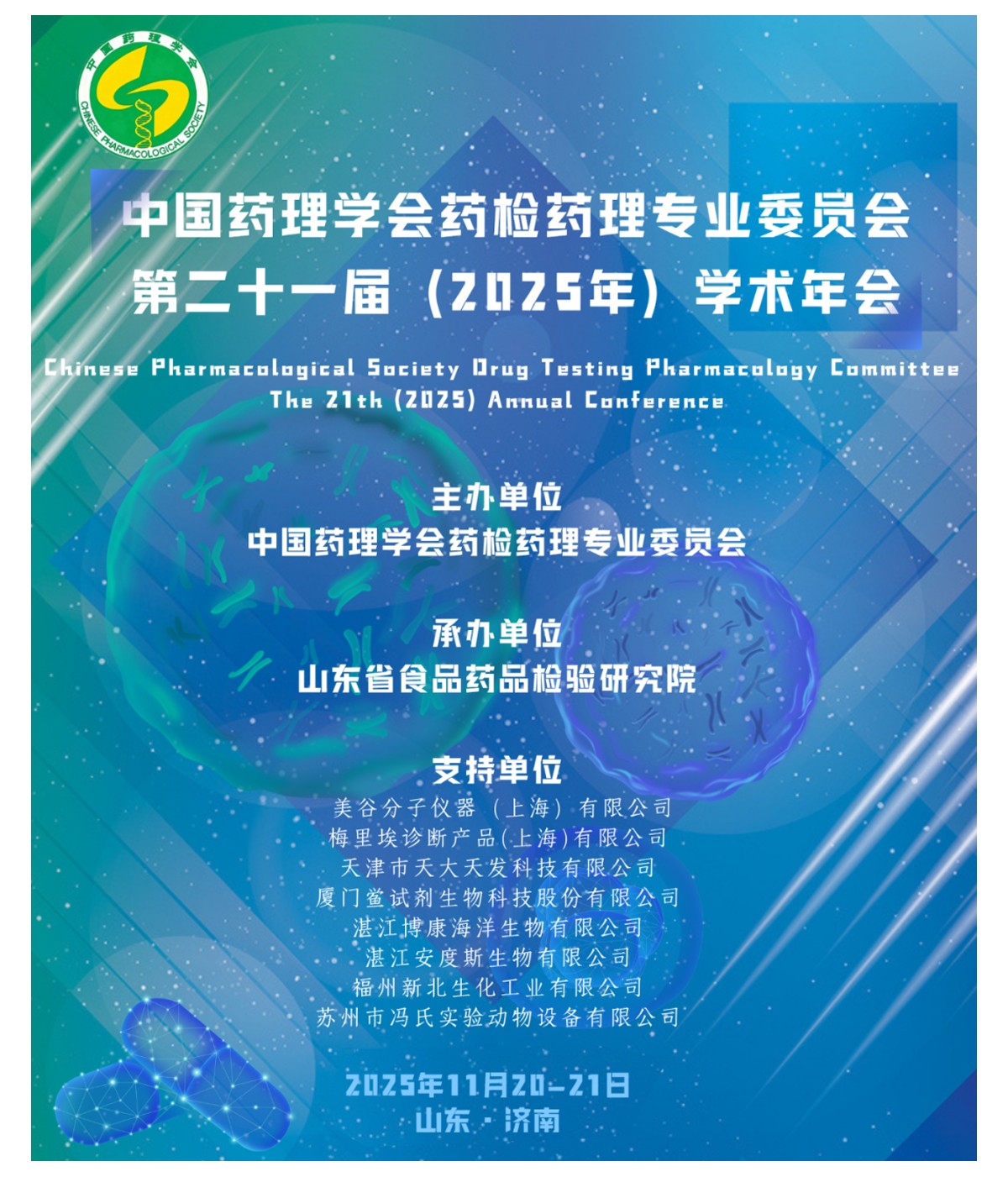 2025年11月20日—21日,中國藥理學(xué)會藥檢藥理專業(yè)委員會第二十一屆(2025年)學(xué)術(shù)年會在山東順利召開。本次大會為總結(jié)我國藥檢藥理領(lǐng)域研究所取得的成果,加強我國藥檢藥理新成就和新經(jīng)驗的交流,提高藥物有效性和安全性的研究水平,促進藥品高質(zhì)量發(fā)展。